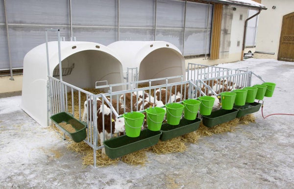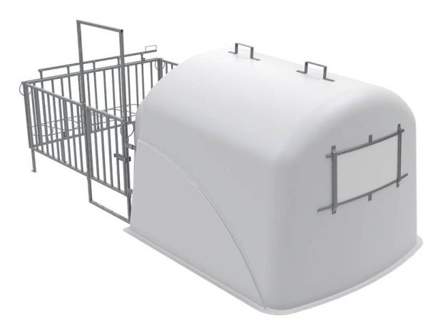 La grande niche, fabriquée en plastique renforcé en fibres de verre, offre assez de place pour accueillir jusqu'à 5 veaux (veuillez respecter les réglementations locales sur la protection des animaux).