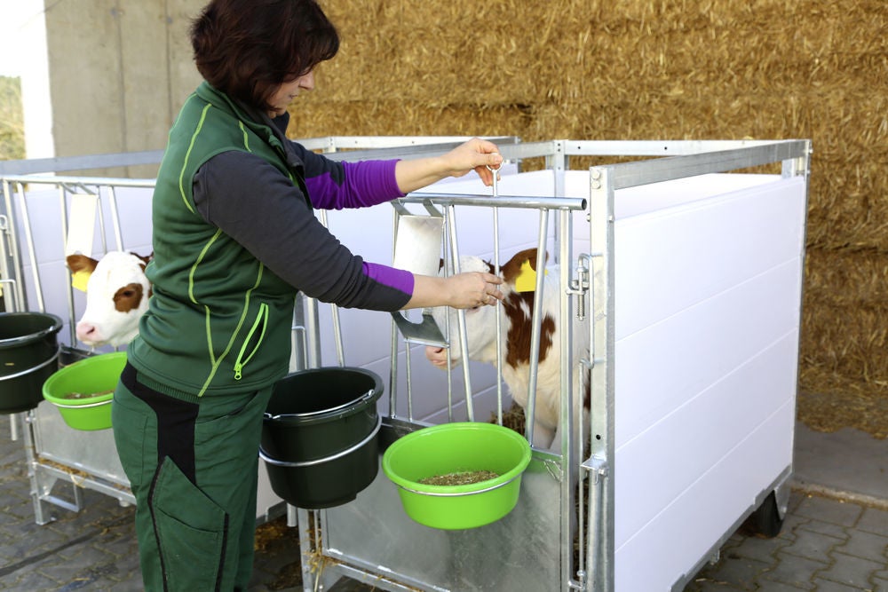 Die Kälberbox sorgt dafür, dass das Kalb viel frische Luft erhält, aber keiner Zugluft ausgesetzt wird. Ebenso wird es von schädlichen Krankheitskeimen abgeschirmt. Das Tier liegt in der Kälberbox nicht direkt auf dem Boden, sondern auf den erhöhten Rosten. Somit hat es das Kalb wärmer und trockener.