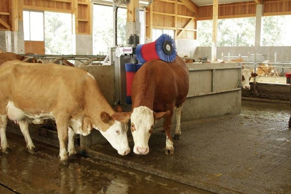 Het gebruik van een koepoetsmachine of veeborstel is een essentiële bijdrage tot het welzijn van de koe en dus een basisvoorwaarde voor een hoge melkproductie.
