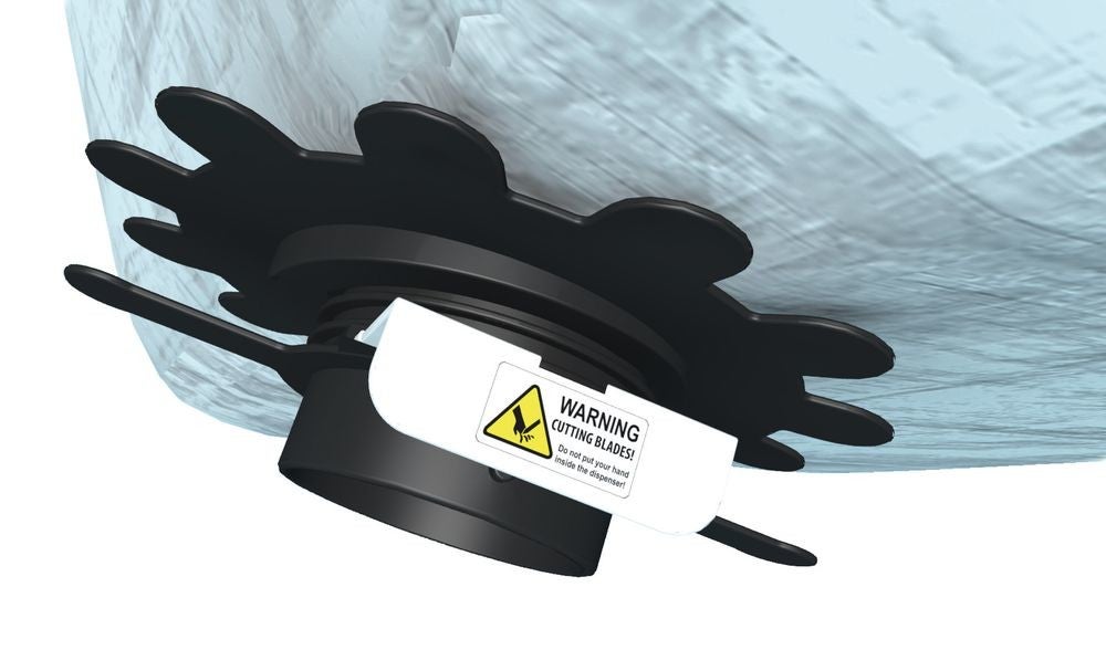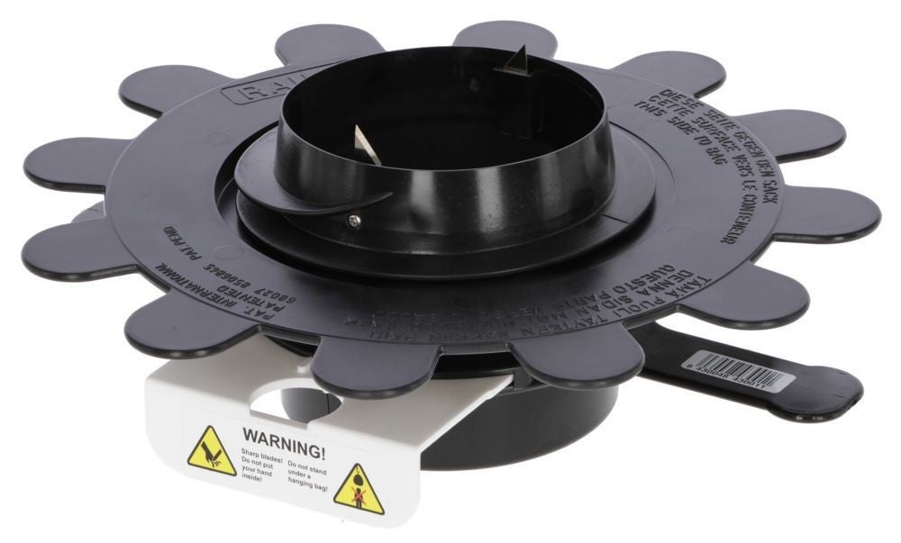 • can be applied to the empty or already filled sacks in seconds – the integrated blades cut the hole when rotated, even in the BigBag