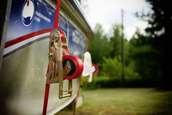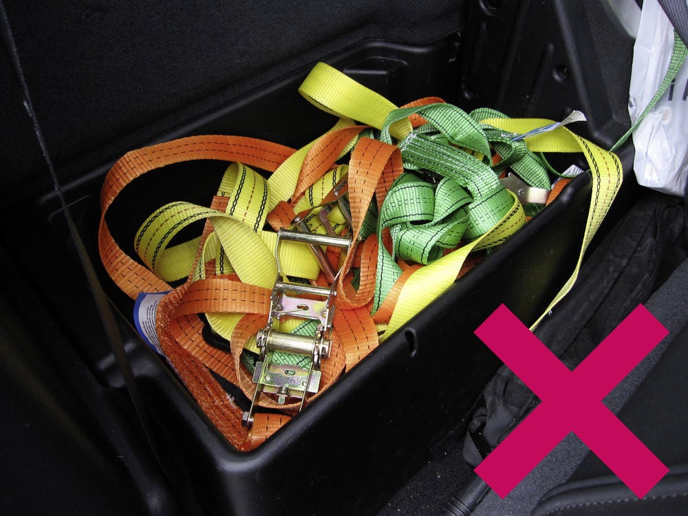 • only TÜV-certified automatic lashing strap approved for use by just one person, since the design prevents the strap from snapping back