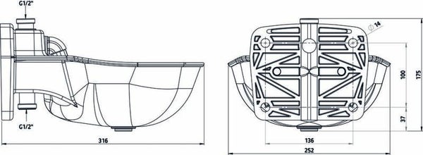 Drinkbak kunststof met buisventiel K75, 1/2" aansluiting