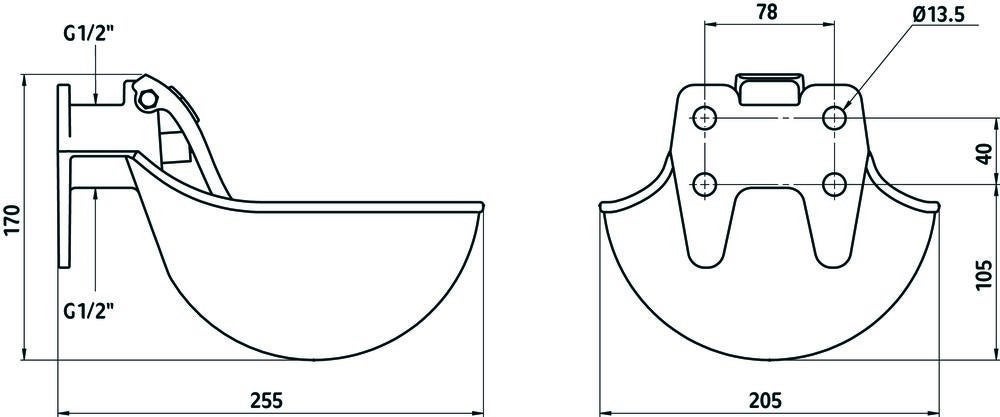 • water bowl made of gray cast iron, enamelled