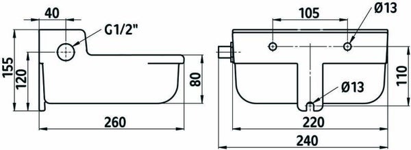 • G 1/2" anschluss am niederdruck-schwimmerventil, von links oder rechts möglich