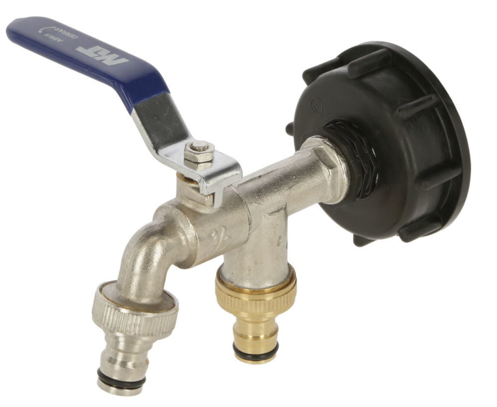 Aansluitkraan voor IBC-container met twee snelkoppelingen, apart afsluitbaar