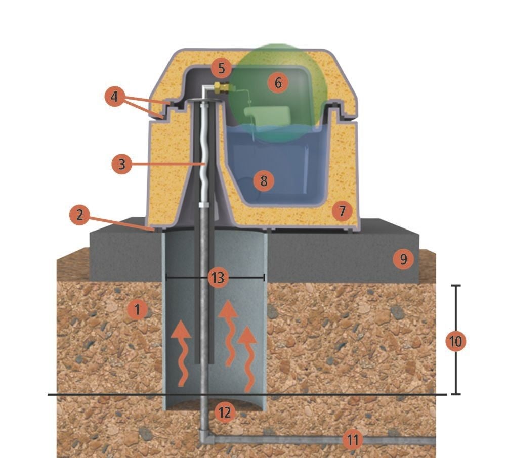 • constant water temperature pleasant at any time of year for animals (approx. 3 to 5 °C in winter, approx. 10 to 12 °C in summer)