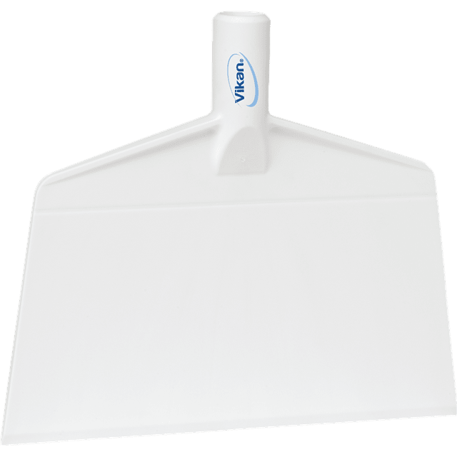 Flexible nylon table and floor scraper. This scraper is suitable for removing stubborn food debris from floors and stainless steel surfaces and equipment. Can be used with any handle within the Vikan colour coded range.