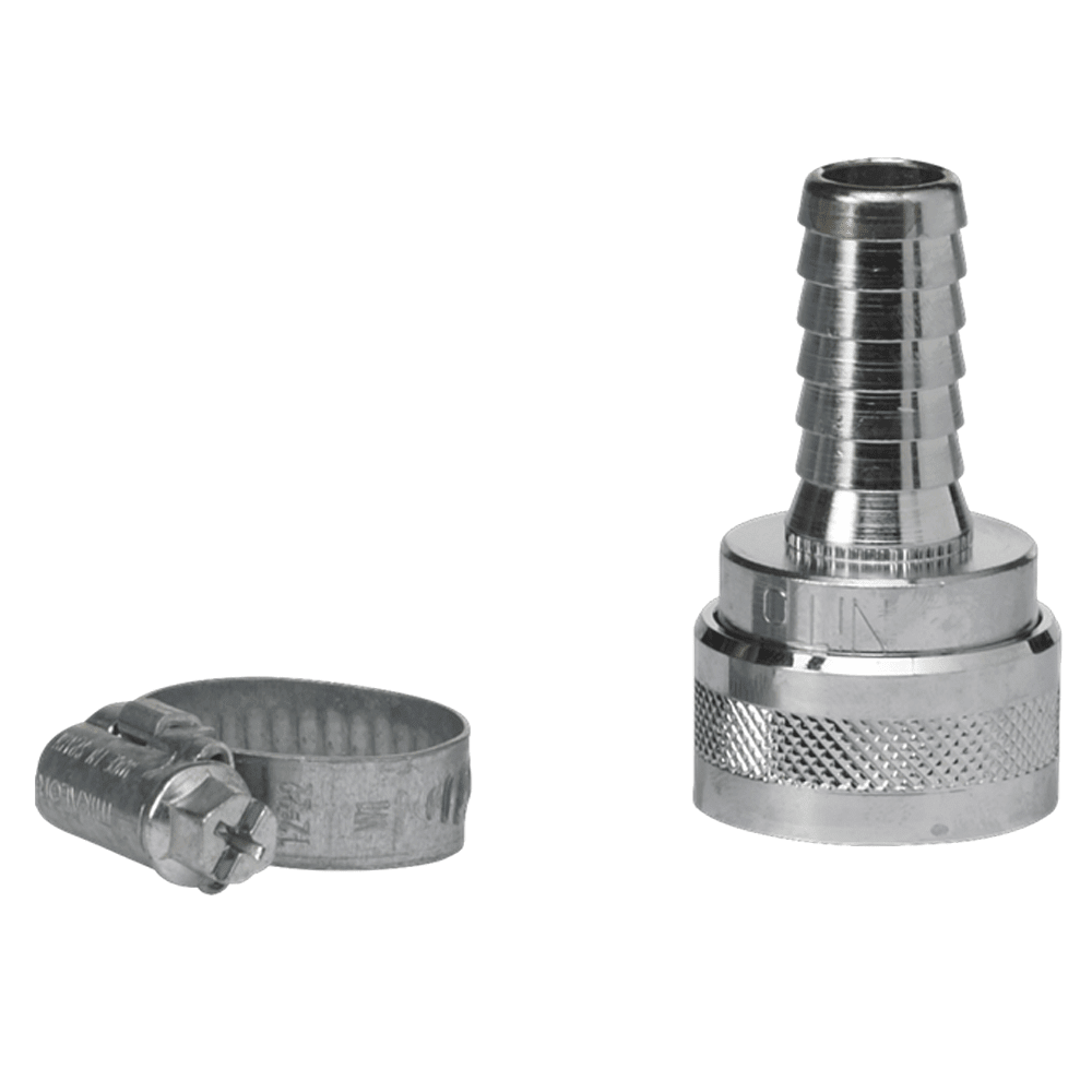 1/2" snelkoppeling en 1/2" slangpilaar. Inclusief slangklem.