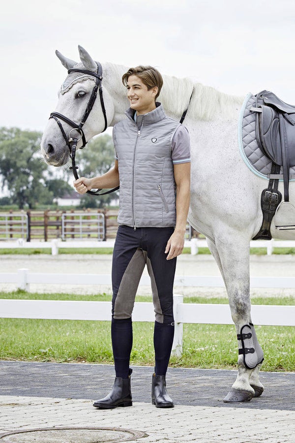 Eine äußerst ansprechende Reithose aus Mikrofaser und Baumwolle für den perfekten Tragekomfort. Die Kontrastnähte und die Paspelierung an den Gesäßtaschenattrappen verleihen der Techno das gewisse Extra. Selbstverständlich ist das Modell, wie es sich für eine vollwertige Reithose gehört, mit einem elastischen Ganzbesatz ausgestattet. Der Beinabschluss mit dem „ElastoSoft“-Material sorgt für einen perfekten Sitz und verhindert lästige Druckstellen.