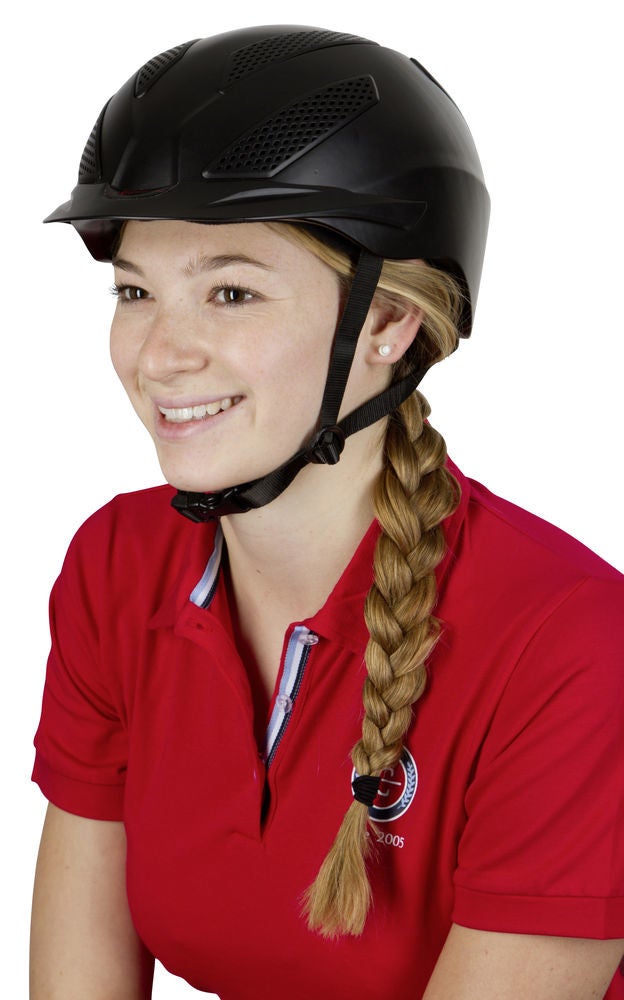 Casque d’équitation de qualité supérieure in-mould et de forme ajustée avec six aérations pour un confort thermique optimal sous le casque !