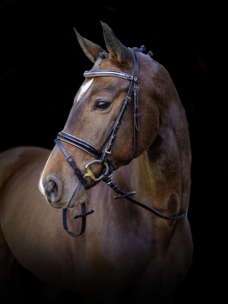 • anatomically shaped browband with two rhinestone rows and attractive piping