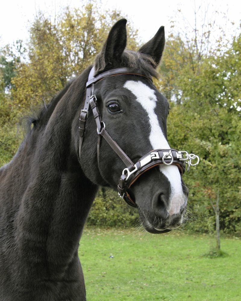 • an Genick, Stirnband und Nasenriemen weich unterlegt