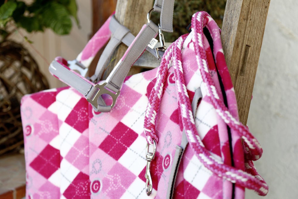 Licol et longe motif à carreaux.