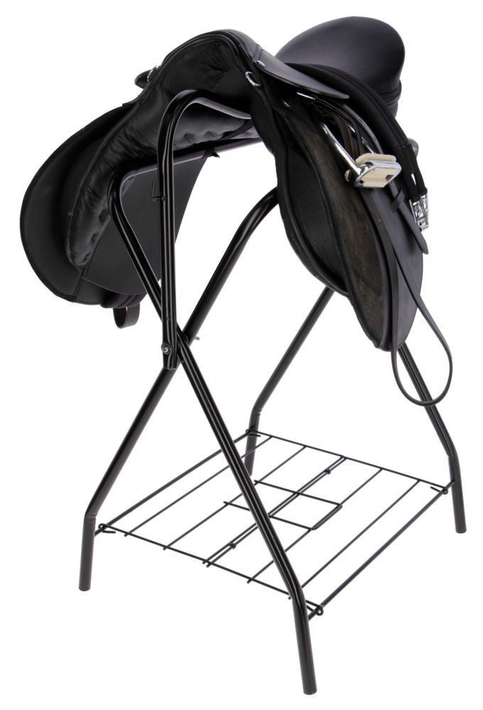 • durable and stable saddle stand with bridle rack and large storage compartment
