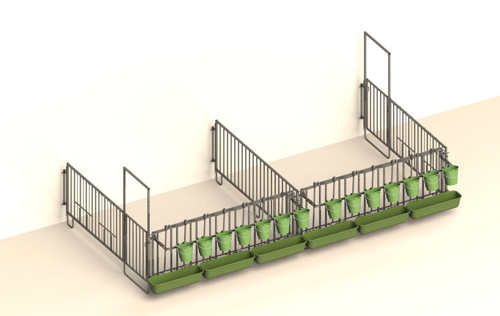 Zur Haltung der Kälber in einer Halle oder überdachtem Bereich, kann die Umzäunung einfach mittels einer Wandhalterung an der Wand befestigt werden. Oder die Umzäunung wird am Boden verankert. Individuell kann die Umzäunung je nach Anforderungen zusammengestellt werden.