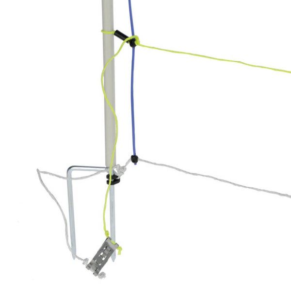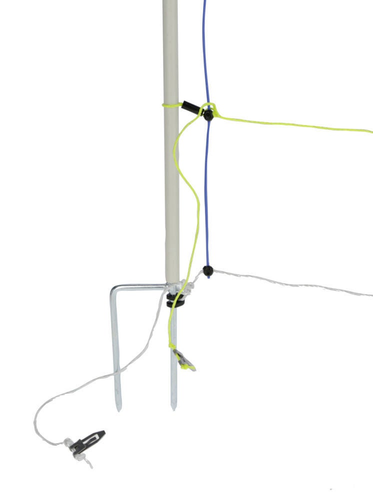 • optioneel aansluitbare, versterkte gronddraad voor de aarding over de gehele lengte van het net bij lastige bodemomstandigheden (bijv. heel zanderige of droge grond)