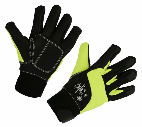 • Handfläche aus weichem, wasserfestem PU-Synthetikmaterial • Handrücken aus Softshell