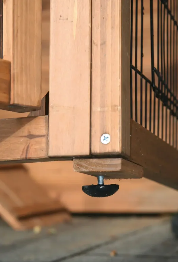 - Weerbestendig en onderhoudsvriendelijk: dankzij de kunststof gecoate vloeren, het weerbestendig bitumendak en het gevernist hout blijft het hok duurzaam, stabiel en eenvoudig te reinigen – ideaal voor elk seizoen.