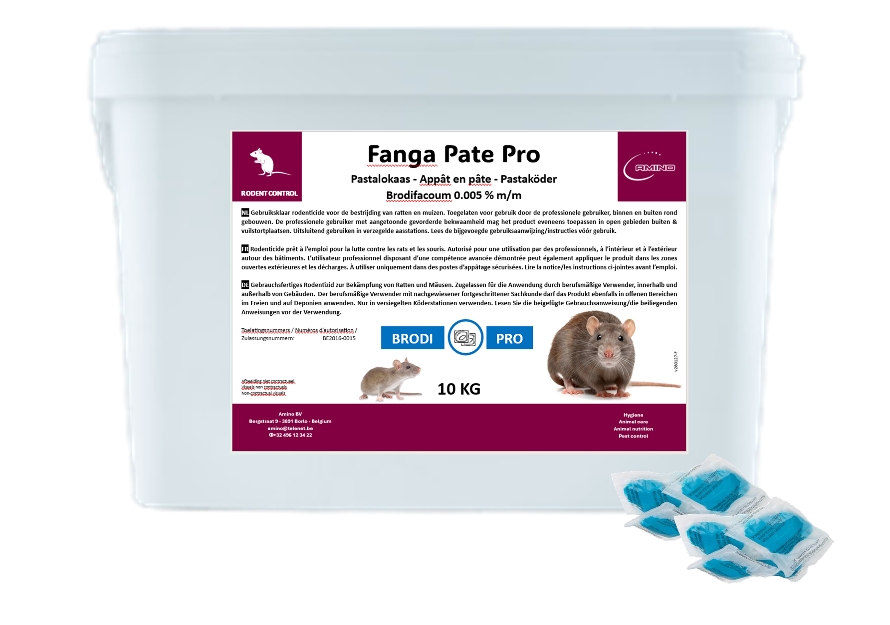 Ready-to-use rodenticide for the control of rats and mice in the form of fresh paste sachets, based on 50 ppm Brodifacoum.